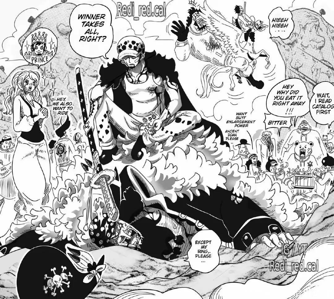 红心海贼团的潜水艇都被击沉了,罗也身负重伤,黑胡子想要夺取罗的手术果实,贝波吃了蓝波丸变成月亮狮子,硬生生击退了黑胡子带着罗逃跑。黑胡子无法追上贝波和罗,两人最终逃出生天。